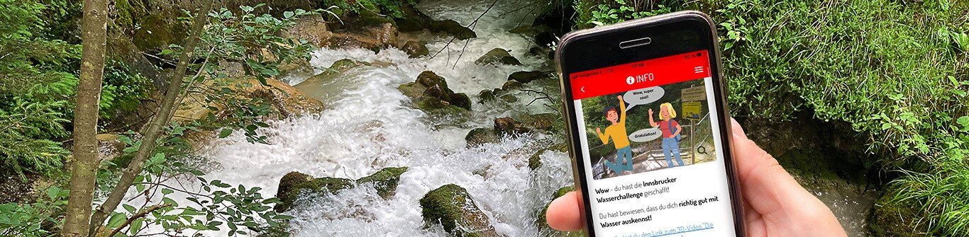 In dem Spaziergang wird deutlich, wie das Innsbrucker Wasser völlig naturbelassen in die Haushalte fließt und dabei auch noch mit wertvollen Mineralien angereichert wird. Mit kniffligen Rätselaufgaben wird vermittelt, wo sich in der ganzen Stadt Hinweise auf die Trinkwasserversorgung verstecken und wie lang das wichtige Leitungsnetz ist. Außerdem gibt es spannende Infos dazu, wie das quellfrische Wasser auch noch verwendet wird, umweltfreundliche Energie zu erzeugen. Aber nicht nur wir Menschen benötigen das Wasser zum Trinken und zur Stromerzeugung – es ist auch ein ganz essenzieller Lebensraum für viele Tiere und Pflanzen. Auf diese trifft man zum Beispiel im Mühlauer Fuchsloch, wo im App-Rundgang ein genaues Auge gefragt ist.