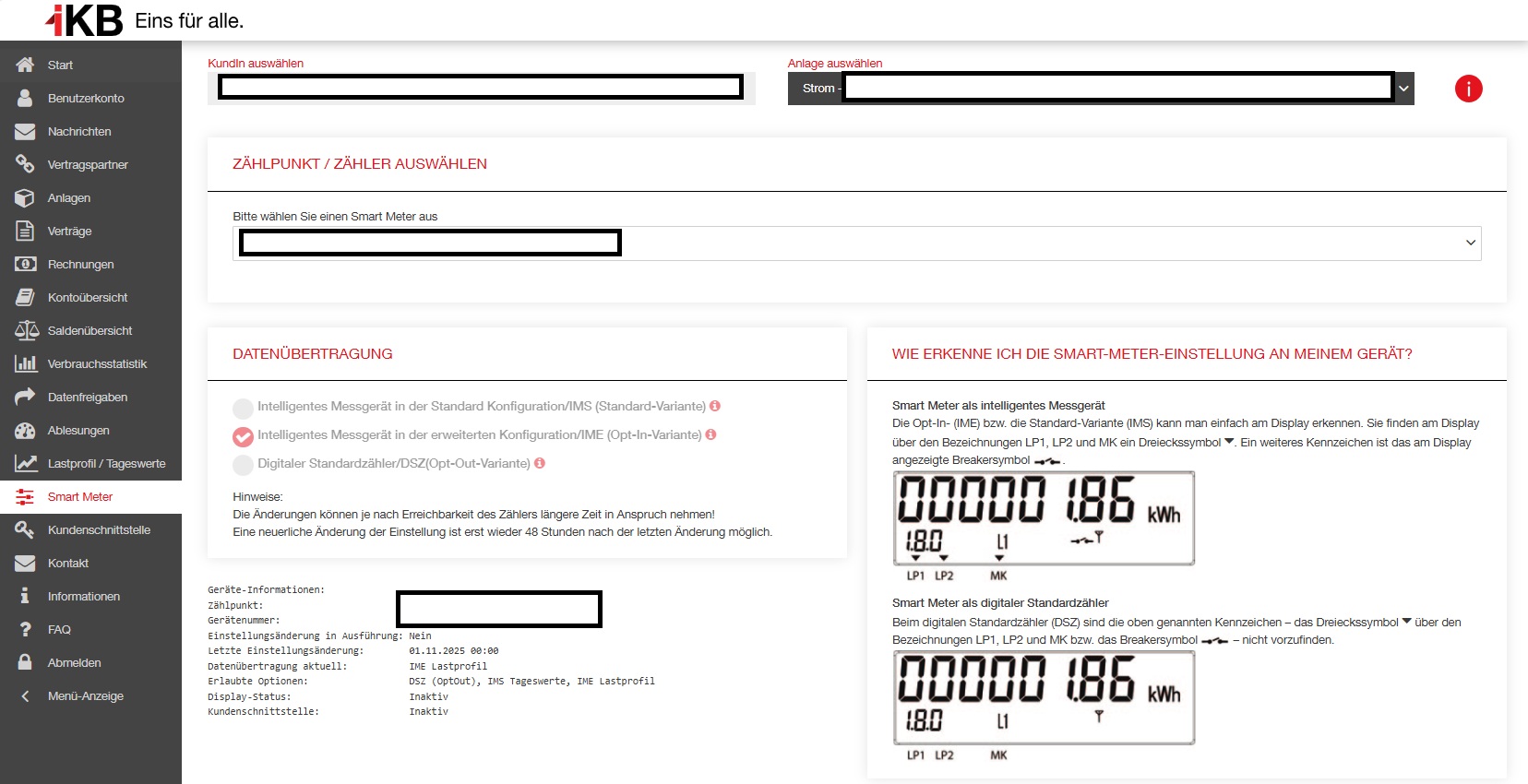 Sie finden die aktuelle Konfiguration im IKB-Netzkundenportal.